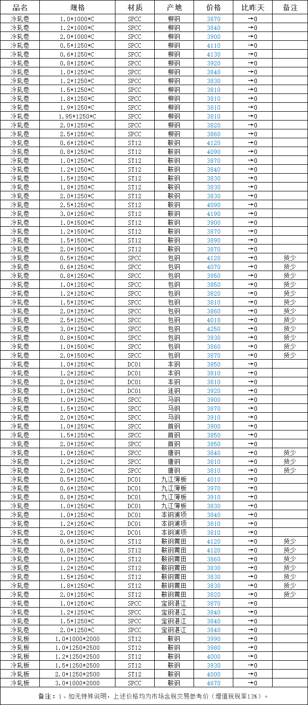2025-10-22广州冷板市场行情