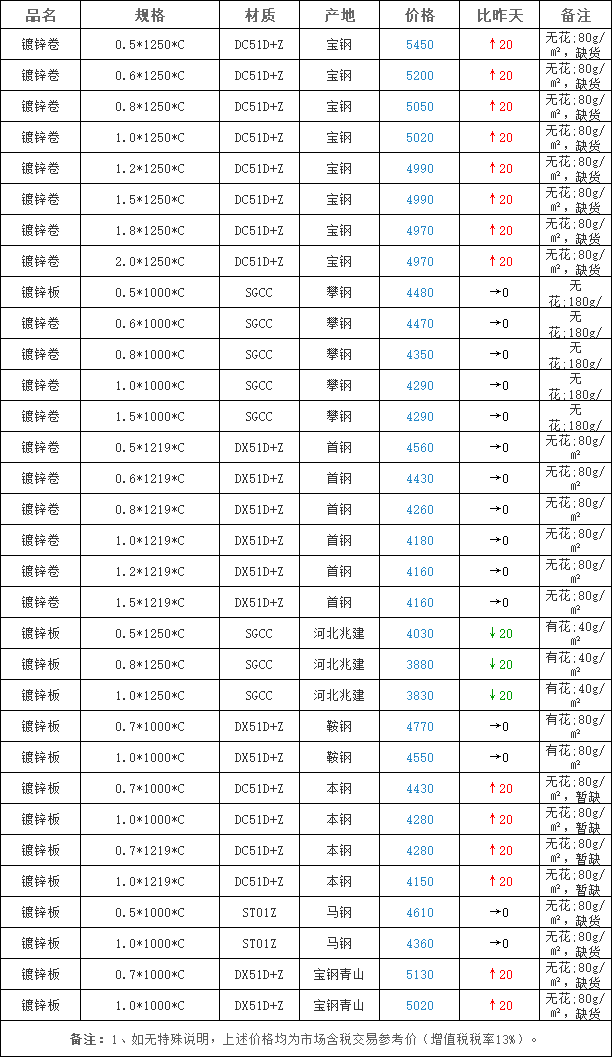 2026-01-15广州镀锌板市场行情